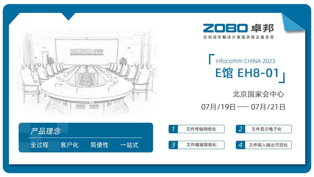 本次ZOBO羞羞APP大全展位(E館EH8-01),分為文體場館空間、智能會議空間、全網絡化空間。在這裏,您將一覽擁有前沿技術的多款音視頻產品和完善的空間視聽解決方案。